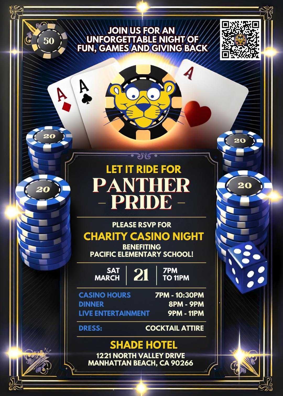 Get ready for an exciting evening at the casino! Please join us for an unforgettable night filled with great company, entertainment and friendly competition to benefit the Pacific PTA.