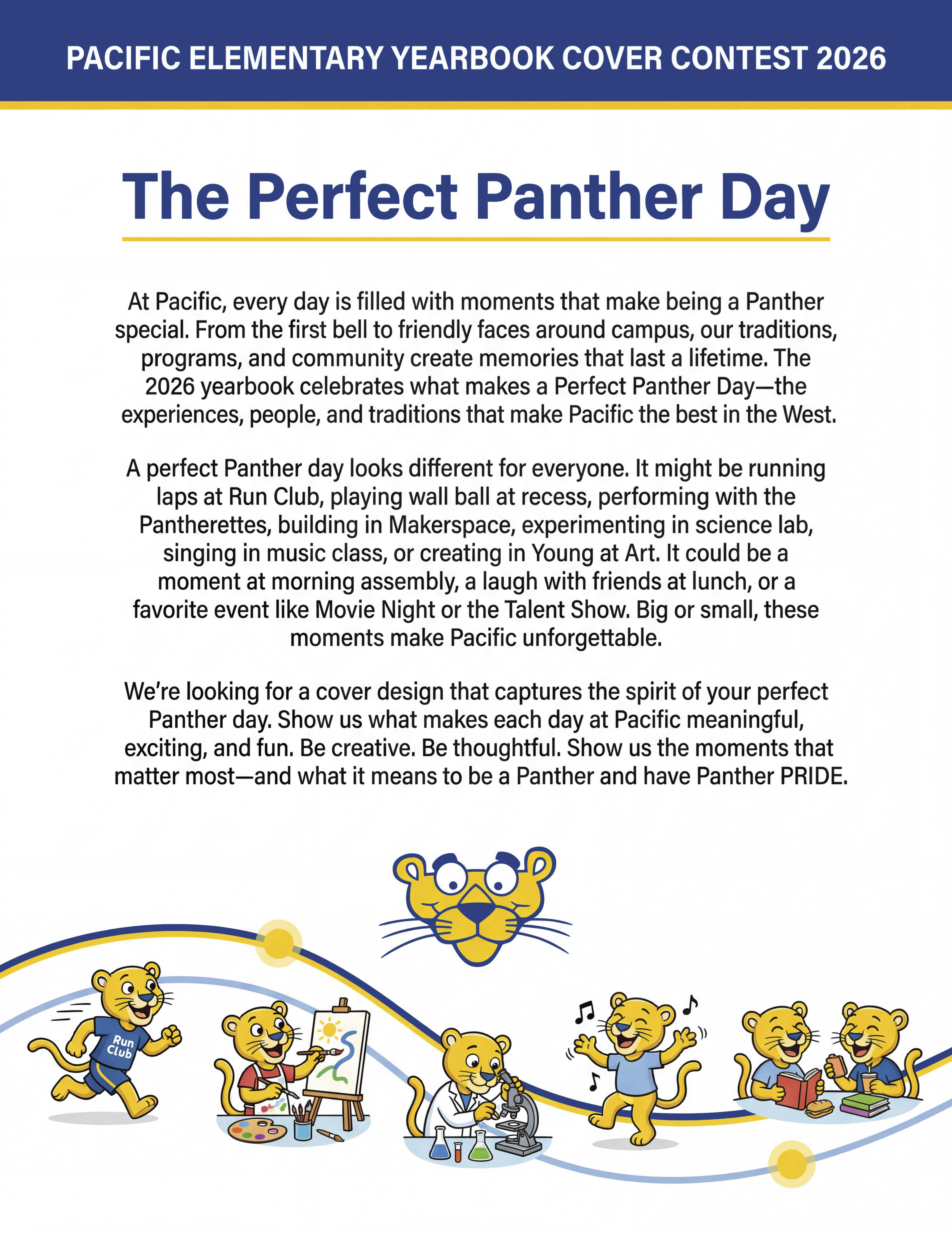 At Pacific, every day is filled with moments that make being a Panther special. From the first bell to friendly faces around campus, our traditions, programs, and community create memories that last a lifetime. The 2026 yearbook celebrates what makes a Perfect Panther Day—the experiences, people, and traditions that make Pacific the best in the West. Submissions are due to the front office by April 22nd.